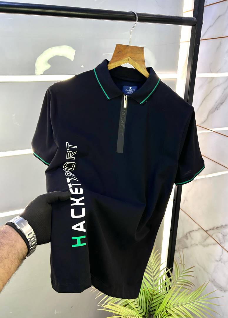 Aston Martin Hacket t Black Polo Premium Back Printed Collar Neck T-shirt F2863-BL