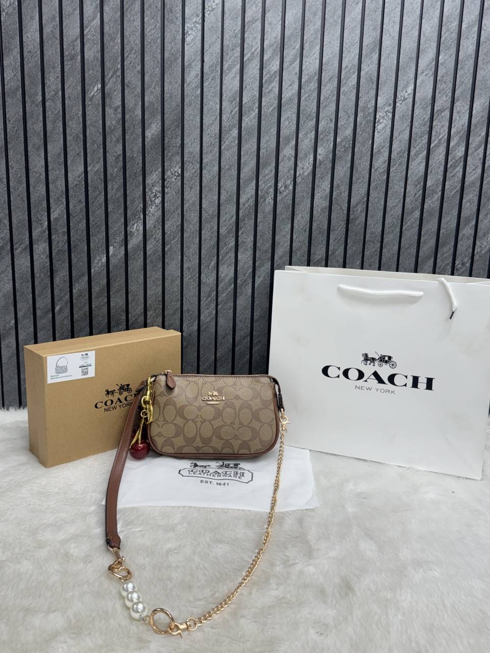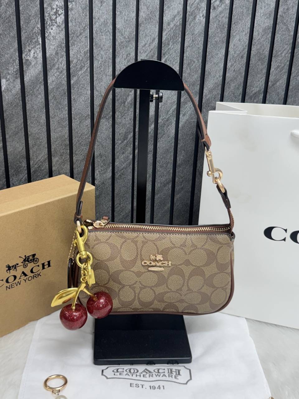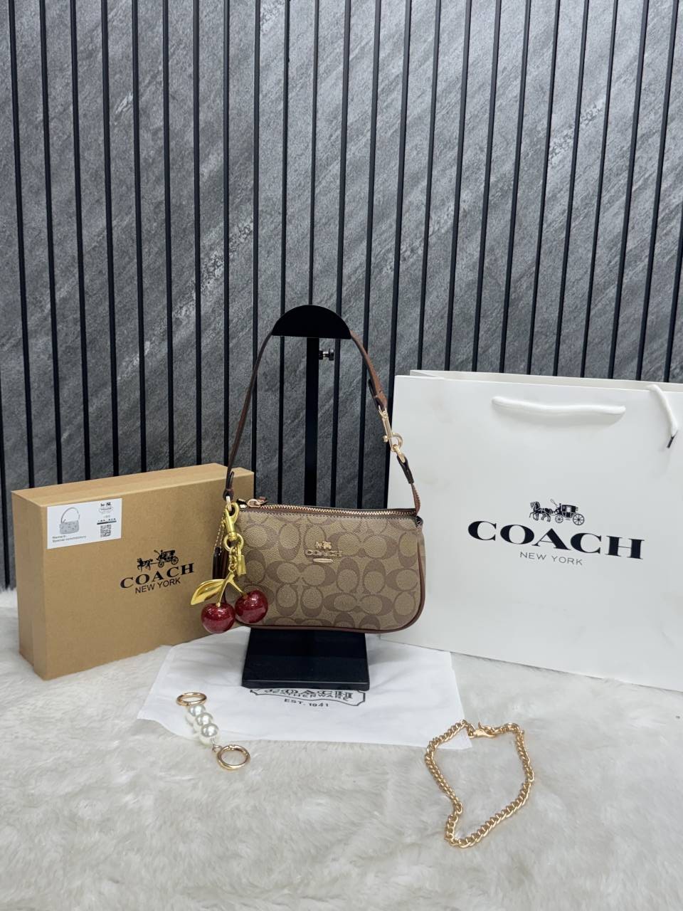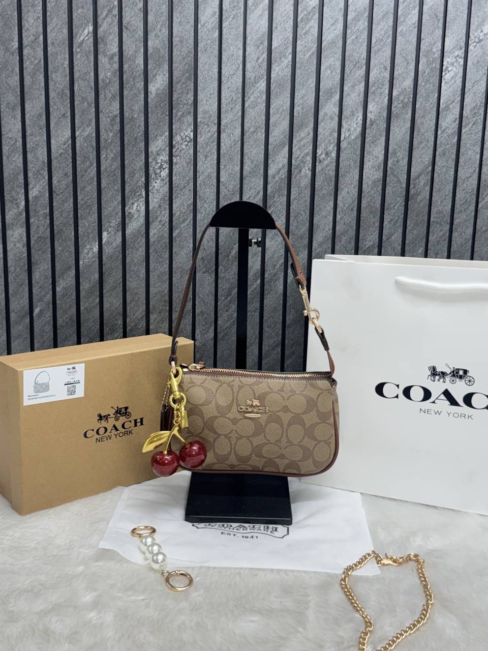 • Coach_CB_Nolita19_Coffee-Black_With_CherryCharm_OriginalBox_DustCover_PearlCharm_Chain