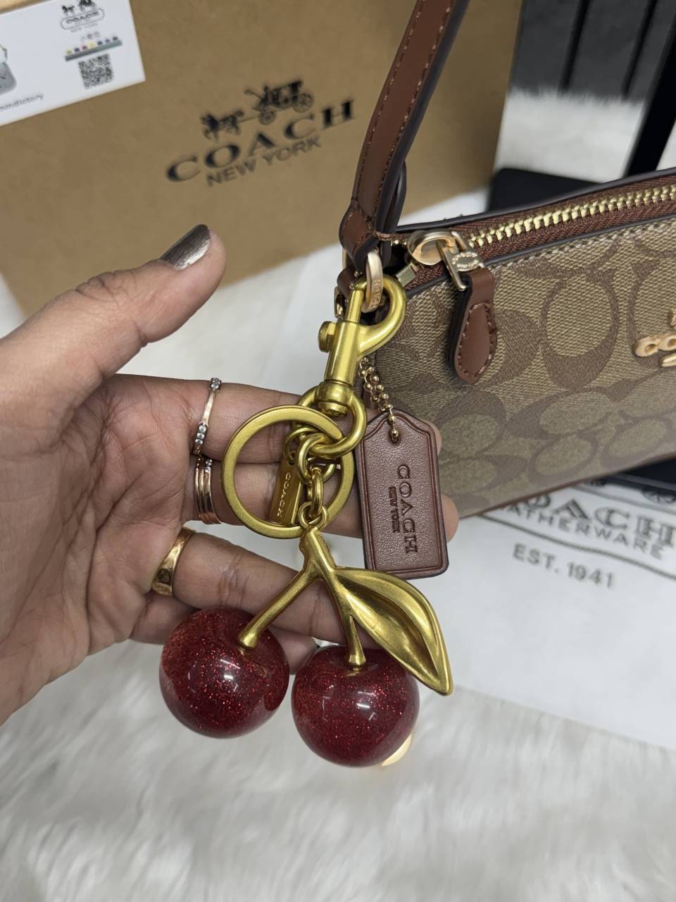 Coach_CB_Nolita19_Ap-Br_With_CherryCharm_OriginalBox_DustCover_PearlCharm_Chain