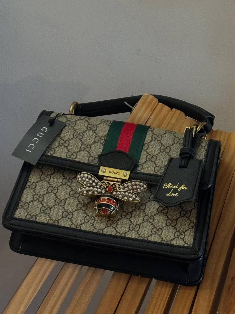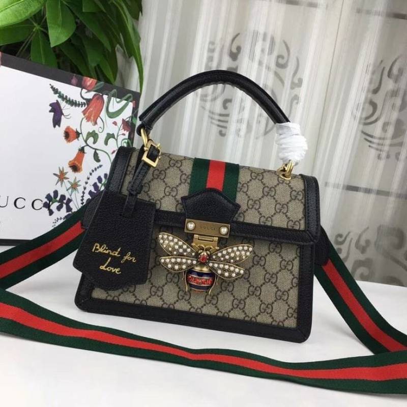 • Gucci_Bee_Queen_Black_Handbag_With_Dust_Cover_&_Carry_Bag_(476533)_Black