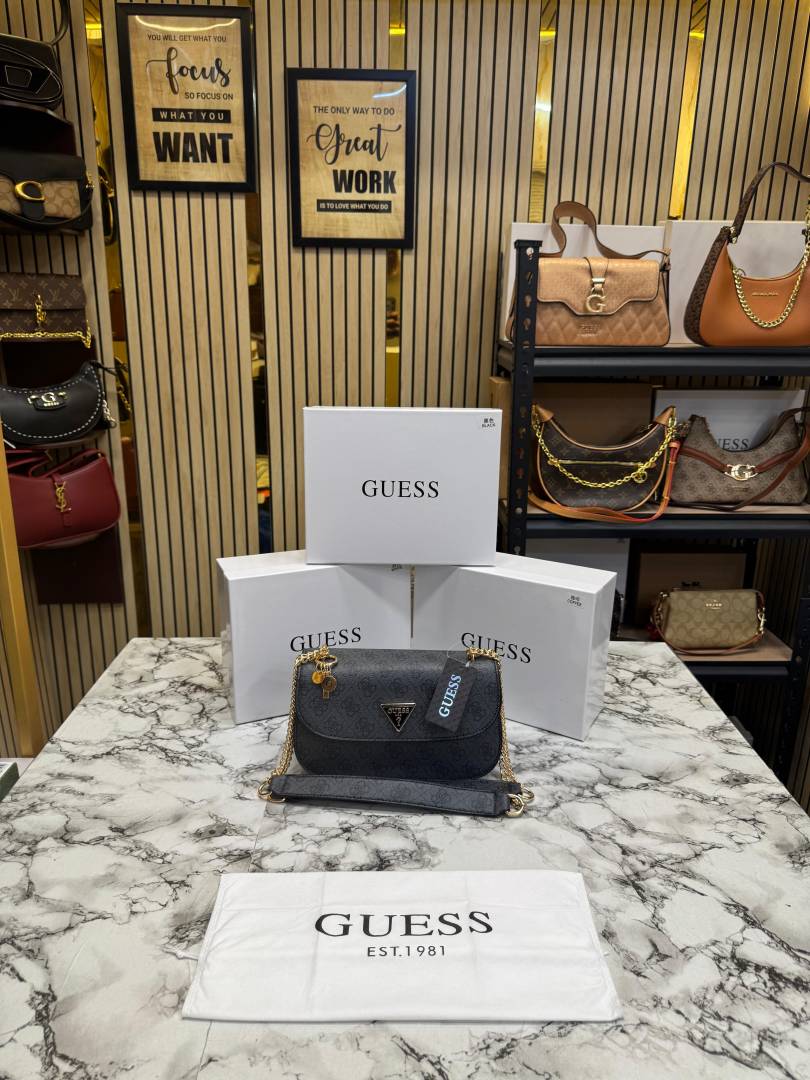• Guess Noelle Crossbody Camera Bag With Box And Dust Bag (grey black)