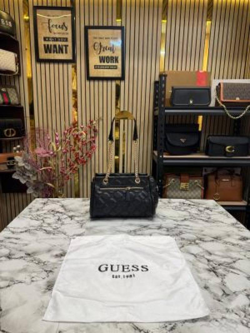 • Guess Quilted Crossbody Lolli Handbag With Dust Bag (Black)