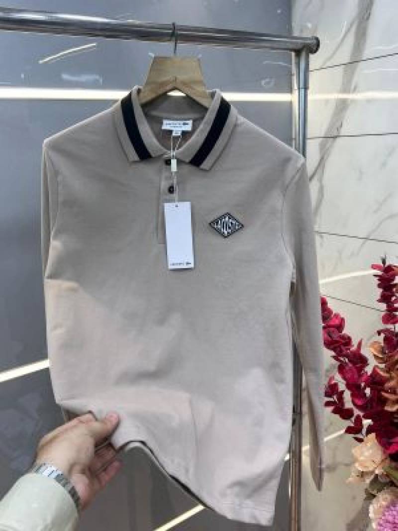 Lacost e Beige Premium Cotton Lycra Pique fabric Polo Full Sleeves Tshirt with Collar Design and Patch Logo 3292
