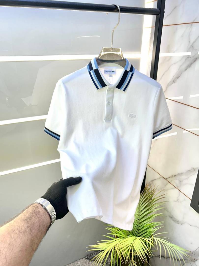 Lacost e White Polo Premium Collar Neck T-shirt F3503-W2