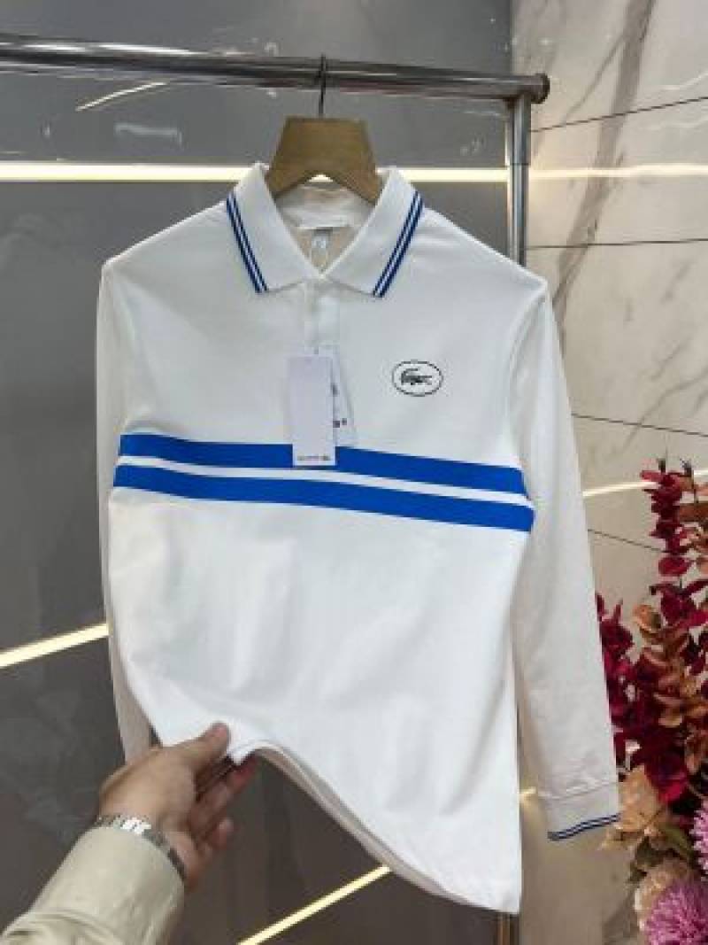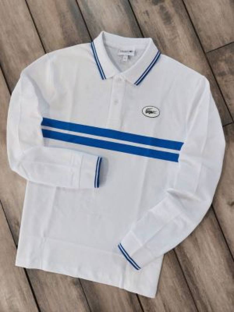 Lacost e White Premium Cotton Lycra Pique fabric Polo Full Sleeves Tshirt with Collar Design and Patch Logo 3293