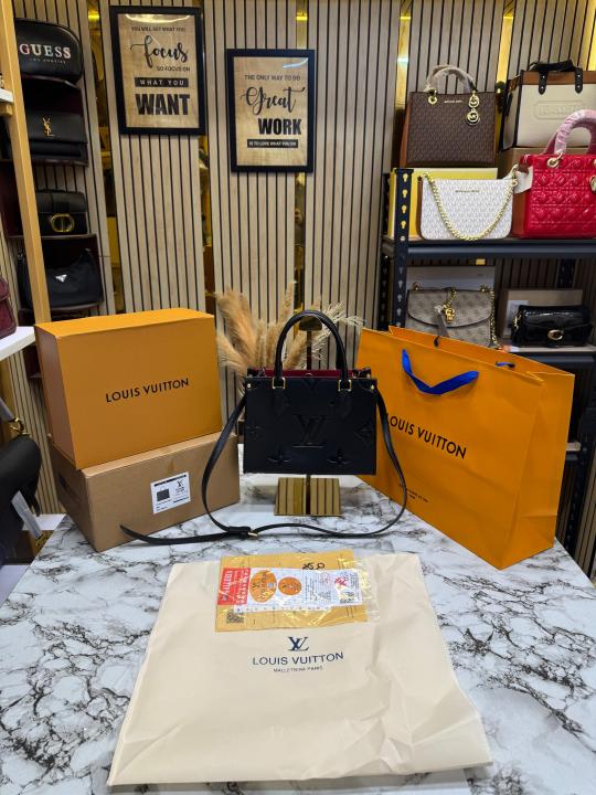 • Louis_Vuitton PM Onthego Monogram Premium Quality Tote Bag With Double Box And Dust Bag Including Carry Bag (Black)(M45595)