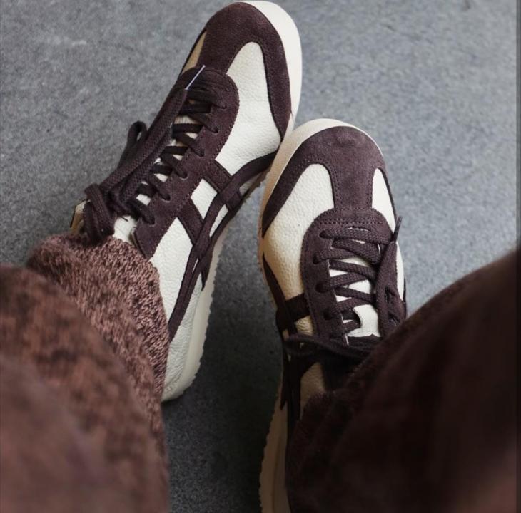 The Onitsuka Tiger Mexico 66 in "Beige / Chocolate Brown" is a masterclass in tonal dressing. This colorway trades the high-contrast look of the tricolor models for a warm, organic aesthetic. Featuring a soft beige base and deep, Chocolate Brown tiger stripes, this 7A Premium Quality edition is designed for those who want a versatile, understated sneaker that pairs perfectly with autumn tones, heavy denims, and casual office attire.