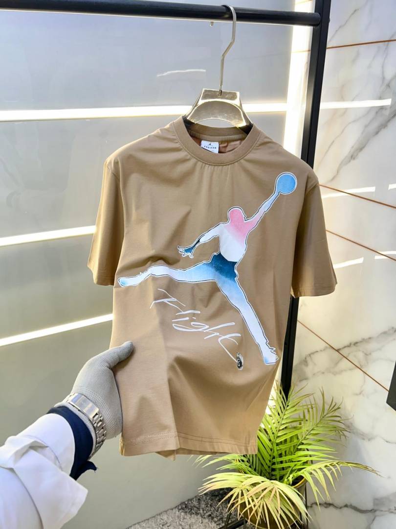 Sale Jordan Drop Shoulder Printed Premium Round Neck Brown T-shirt F1488-BR